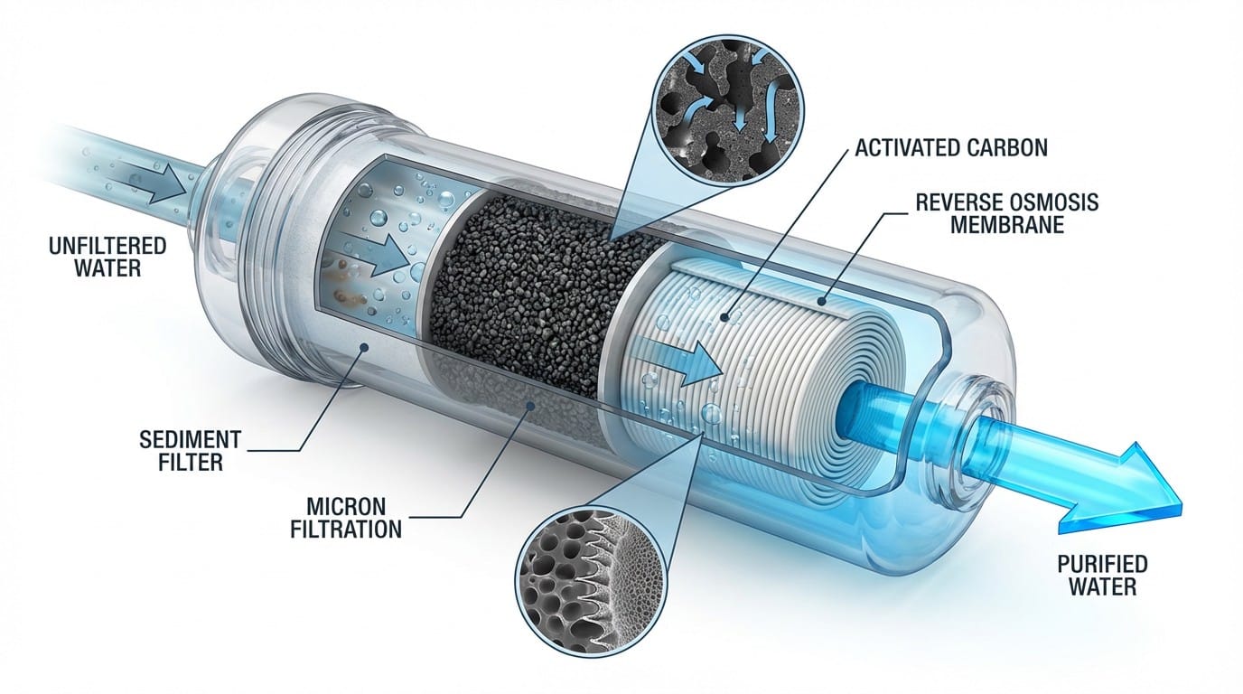 | Φίλτρα Ενεργού Άνθρακα (Carbon Block) | Αφαιρούν χλώριο, φυτοφάρμακα, και οργανικές ενώσεις. |